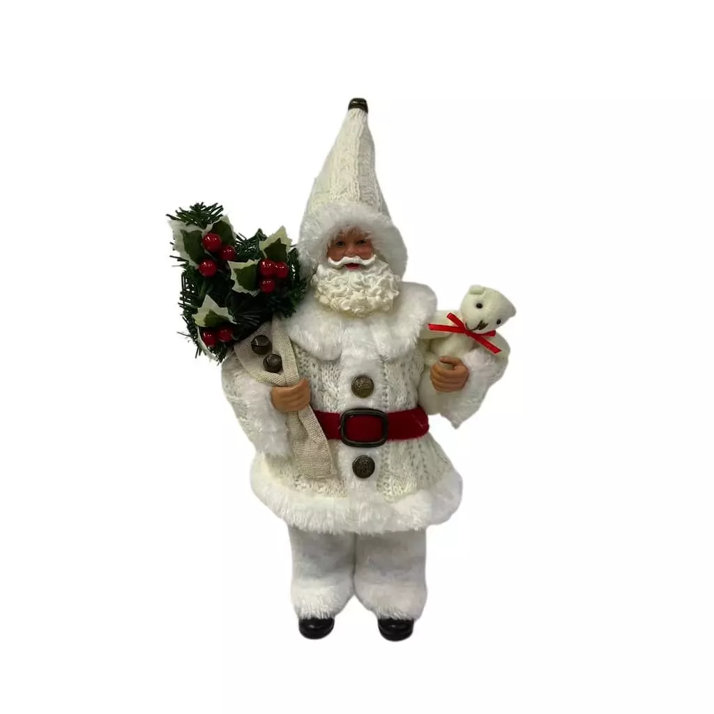 Bring traditional charm to your home for the holidays with this festive Santa figure from Ashland. Wearing his warm winter robe and holding a teddy bear, this Santa will look right at home nestled in faux snow with tinsel and lights on your mantel for a great addition to your Christmas décor.