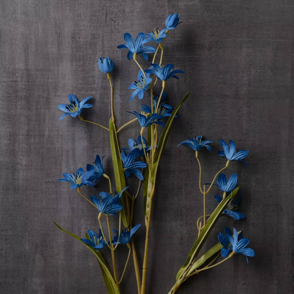 This blue flower spray will look beautiful as part of a floral arrangement. It can also be used in craft projects and for other decorative purposes.