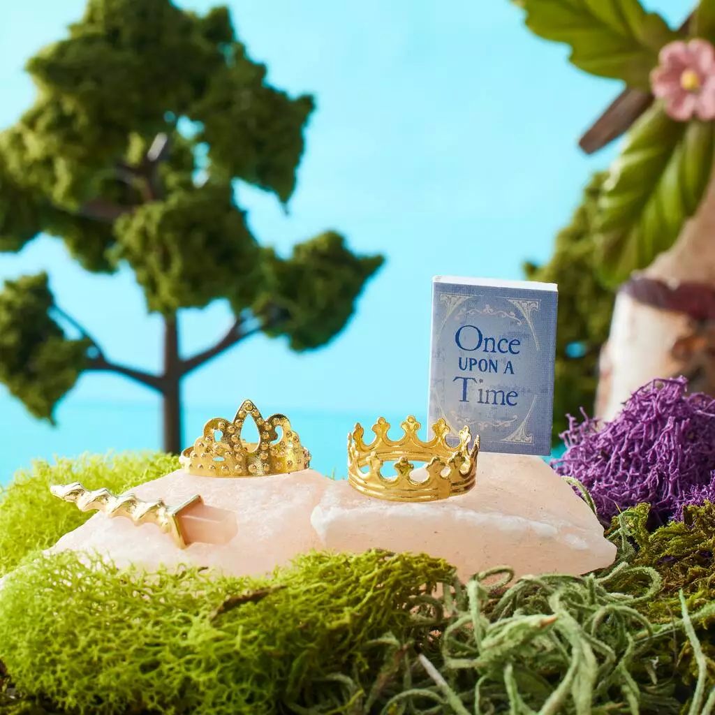 Add charm and personality to a fairy tale scene using this miniature accessory set. Complete with crowns for a royal pair, a magic wand and a book, this set is the perfect finishing touch to a storybook diorama or castle setting.