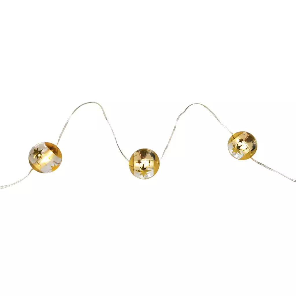 Make the season bright with these festive ball-shaped crafting lights decorated with shiny gold stars! These battery-operated warm white LED bulbs on a silver wire feature steady burning, fading and flashing light settings and a timer. These lights are ideal for use in handmade gifts and lit holiday floral décor to display in your home for the Christmas season.