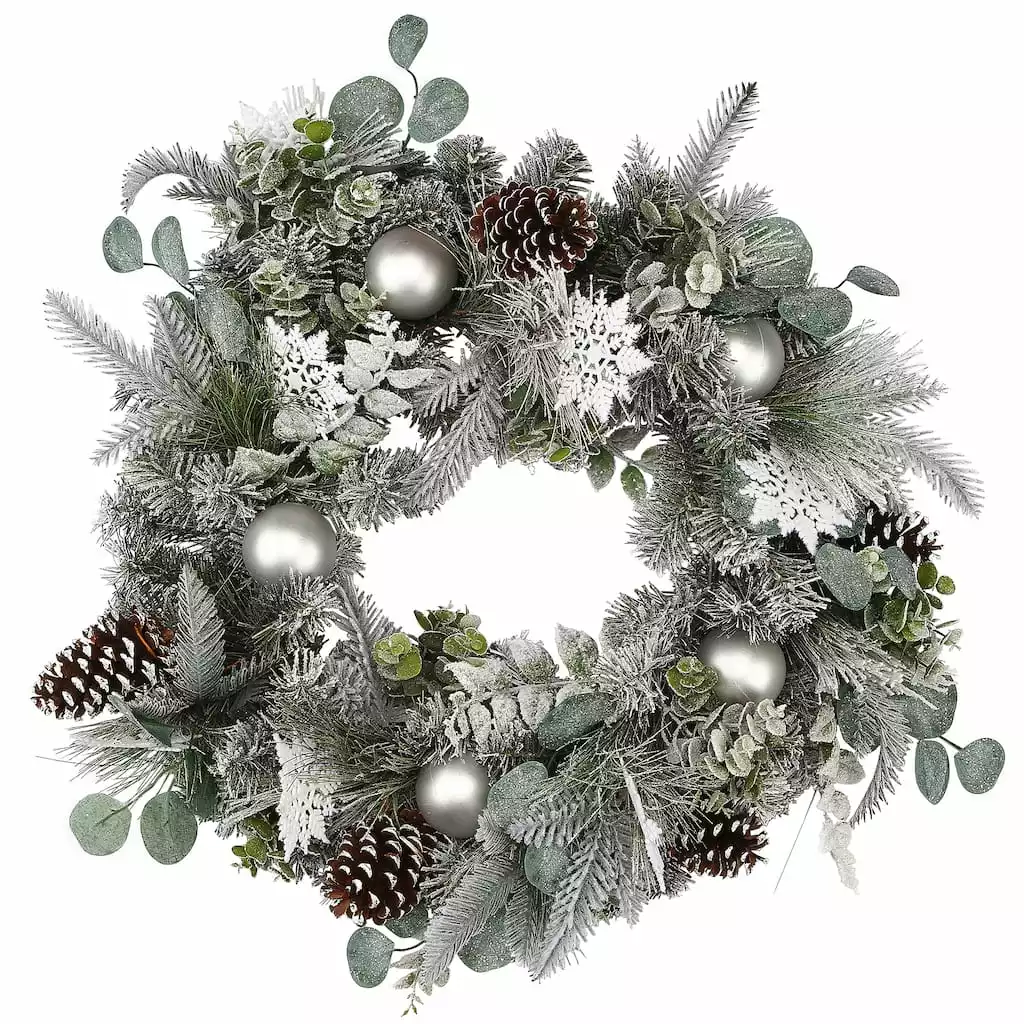 Best deal 🤩 24″ Flocked Pine, Snowflakes & Ornaments Wreath by Ashland® ❤️
