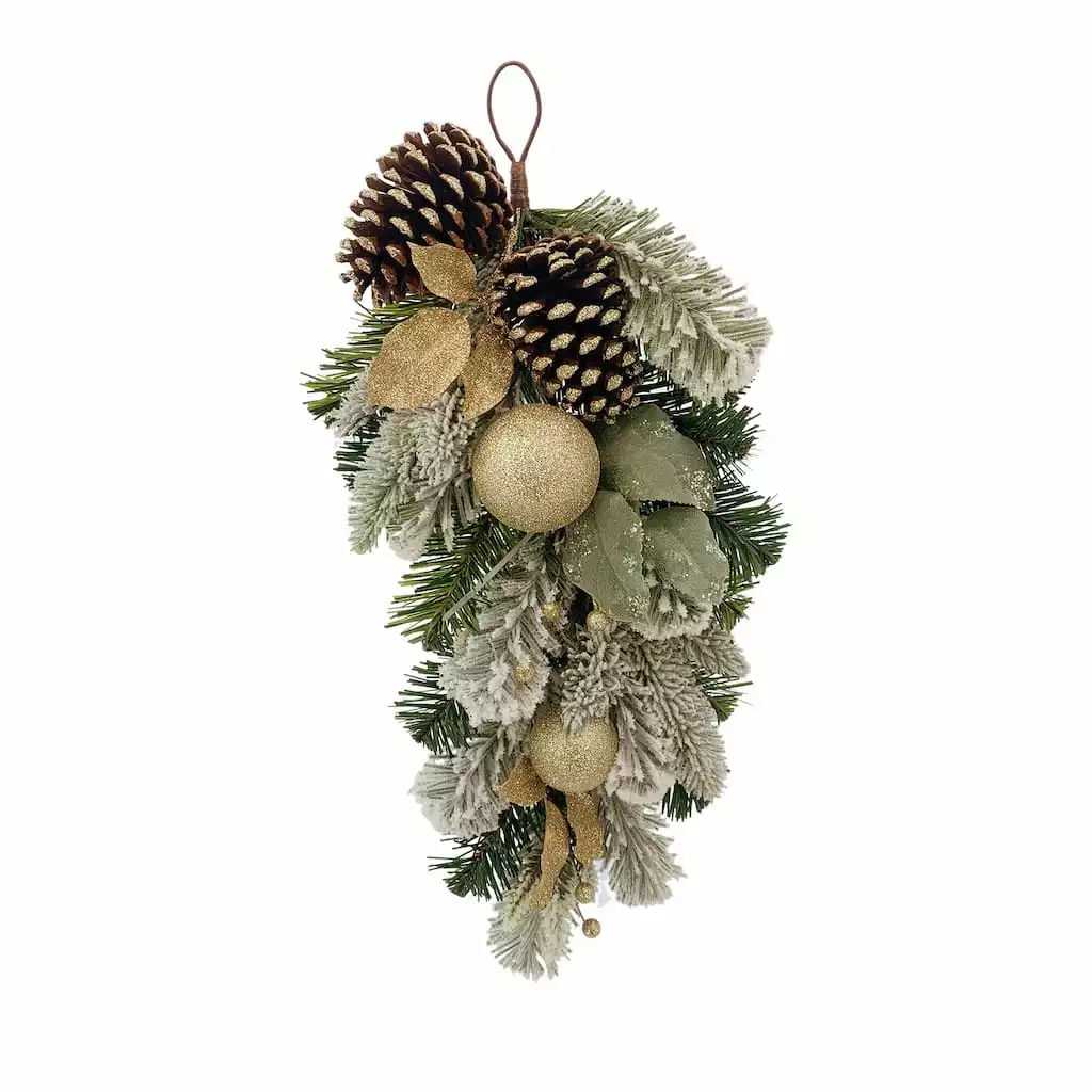 Flash Sale ⭐ 24″ Pine & Gold Ornament Teardrop Swag by Ashland® ⭐