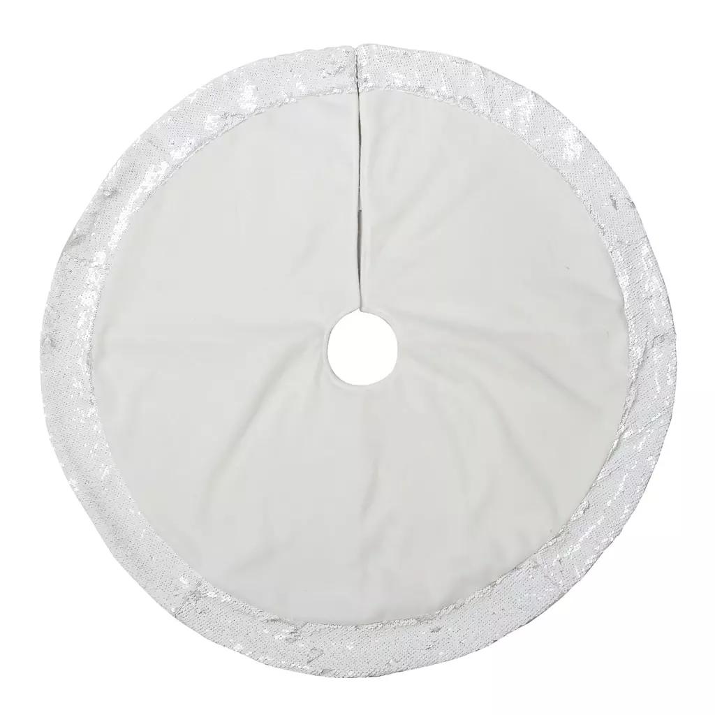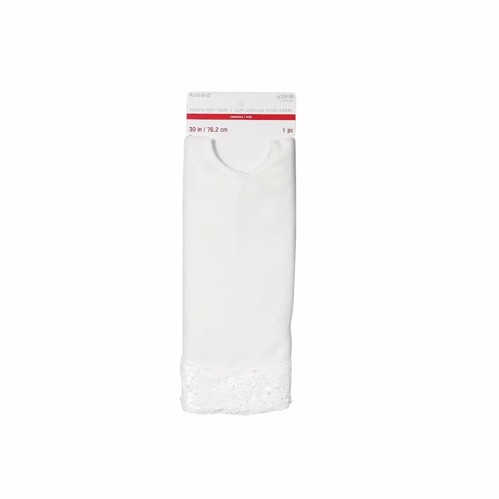 This white and sequined pencil tree skirt is guaranteed to complement your tree. Team it with bright ornaments and lights for the perfect holiday display.
