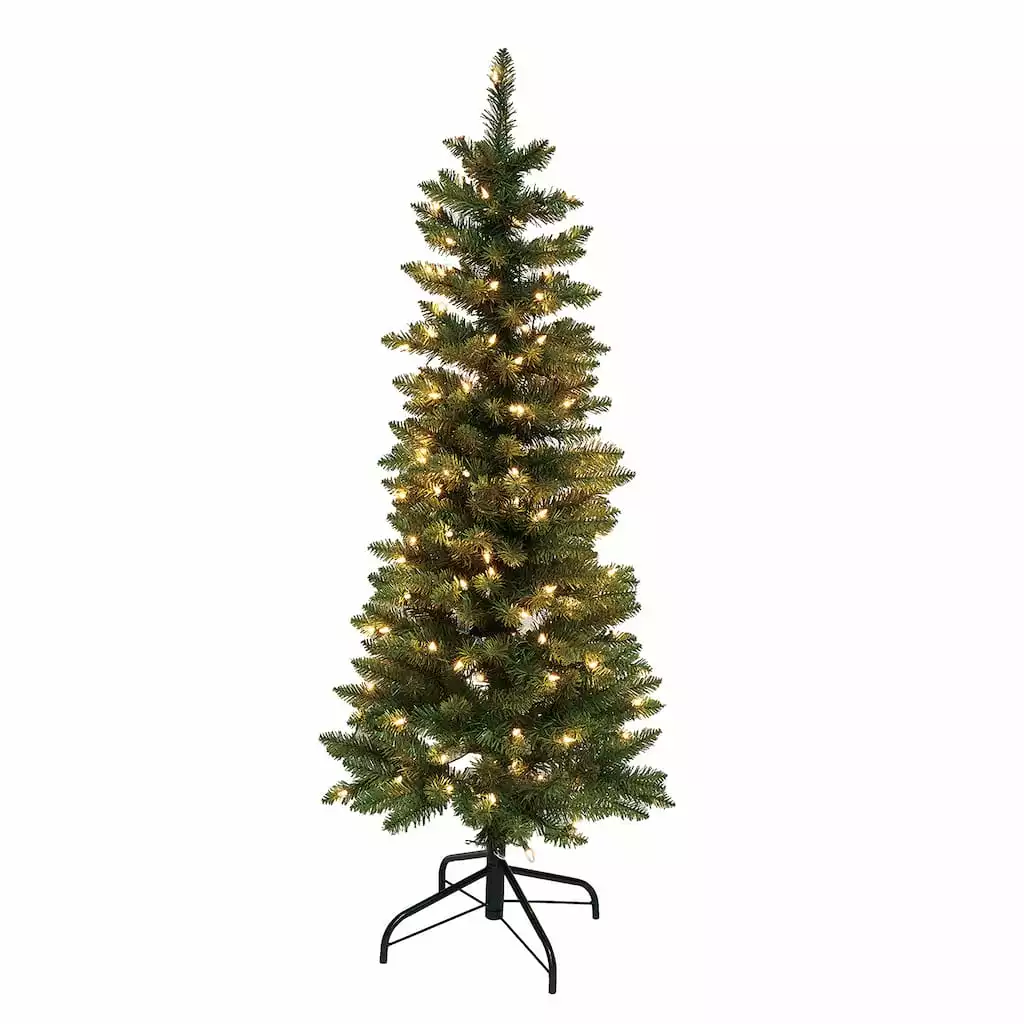 Have yourself a very merry Christmas with this artificial Christmas tree. This green artificial Christmas tree is accented with glitter and features 276 branch tips and 150 clear lights for a charming holiday ambiance. This lovely tree is ready to showcase your favorite trimmings season after season.