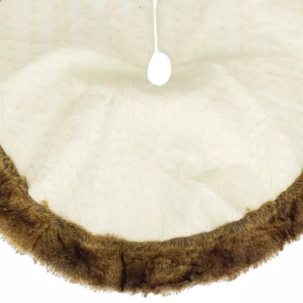 This white cable knit fur tree skirt is guaranteed to complement your tree. Team it with bright ornaments and lights for the perfect holiday display.