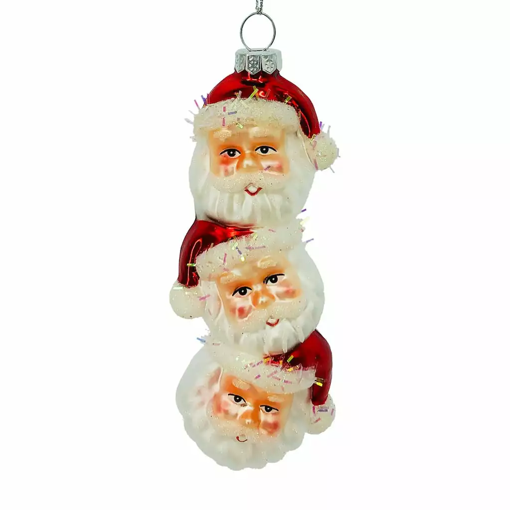 This unique ornament features multiple stacked Santa heads. It also has a loop on top for easy hanging. Put it on your tree, wreath, or any other item for more depth and style. It will make a great addition to your holiday-themed dรฉcor.