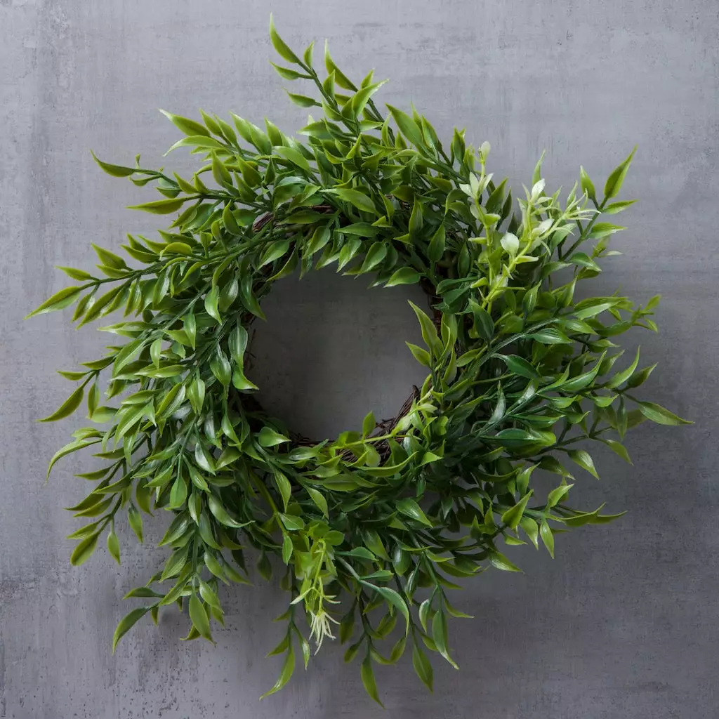 Add some lush green hues to your dΓ©cor with this ficus wreath by Ashland. You can also accentuate it with burlap ribbons.
