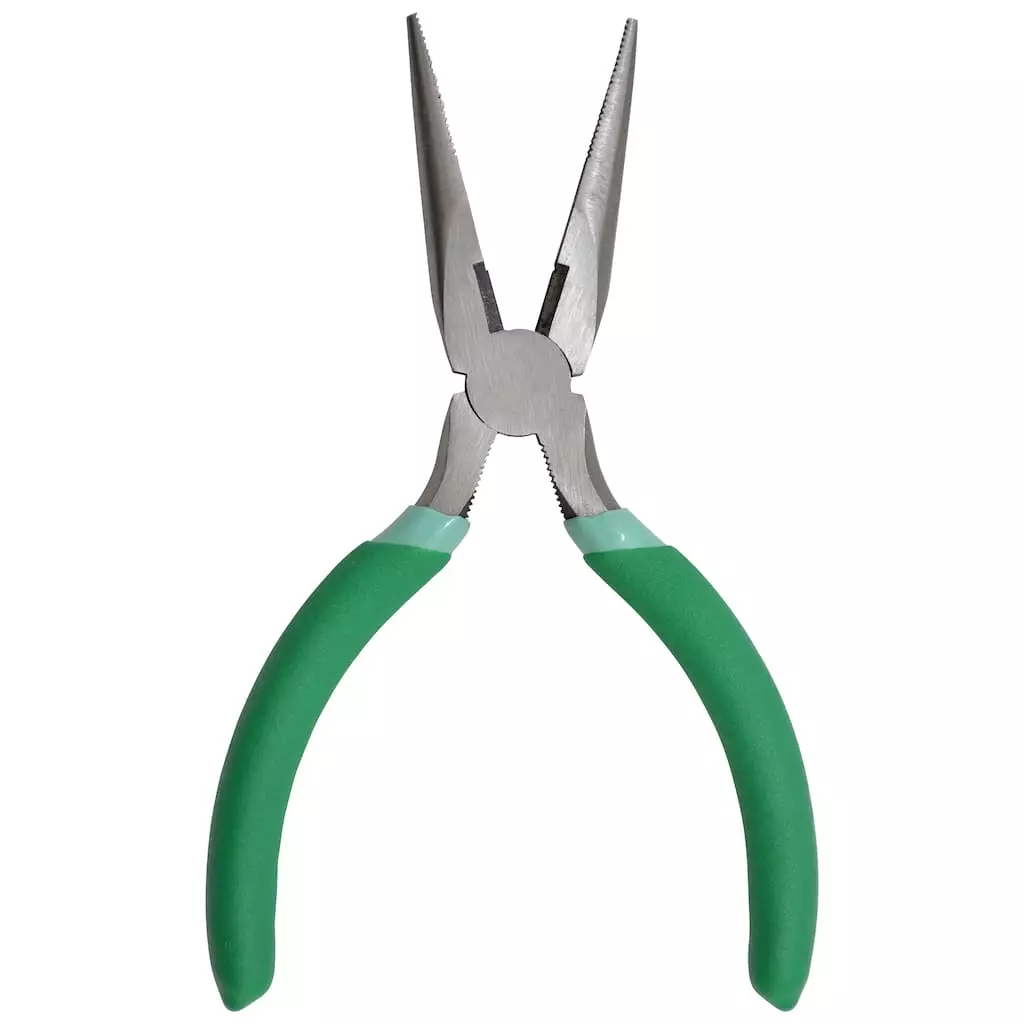 - Silver colored with green handle