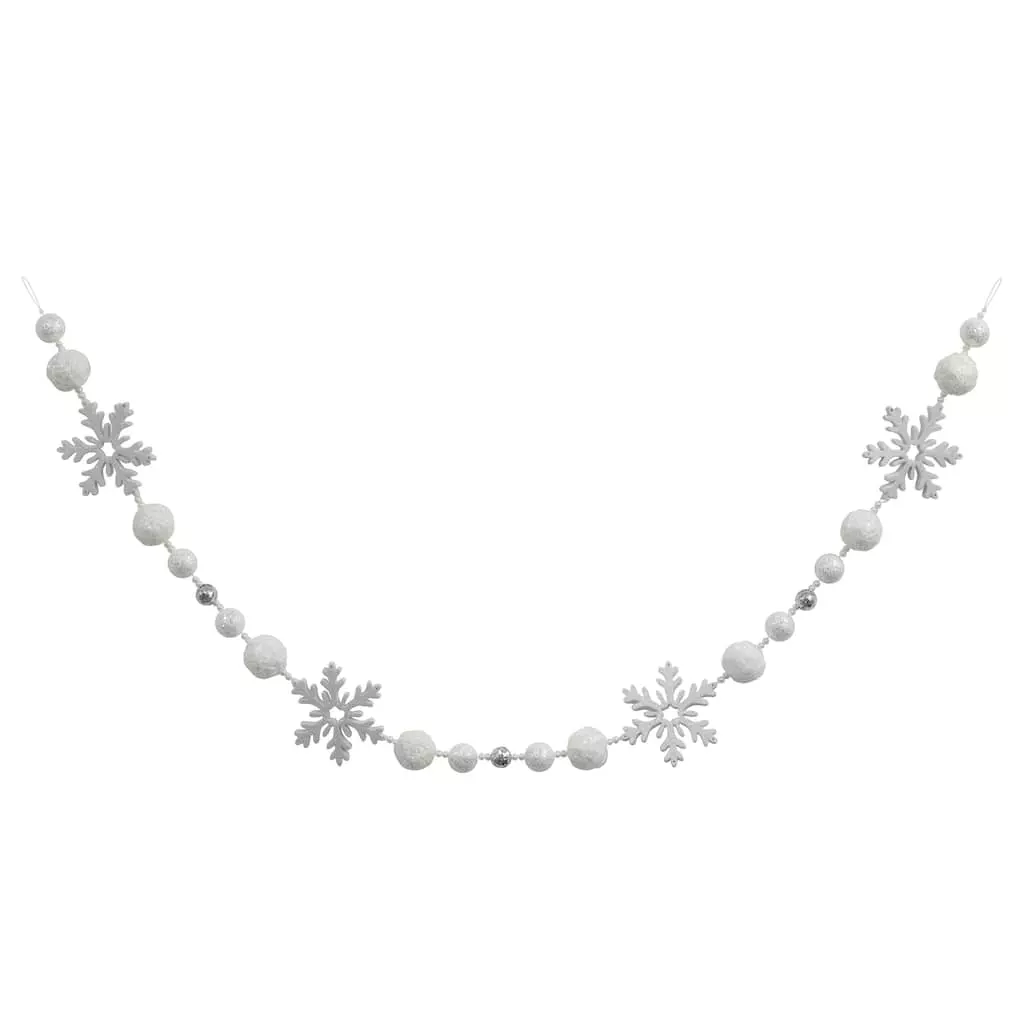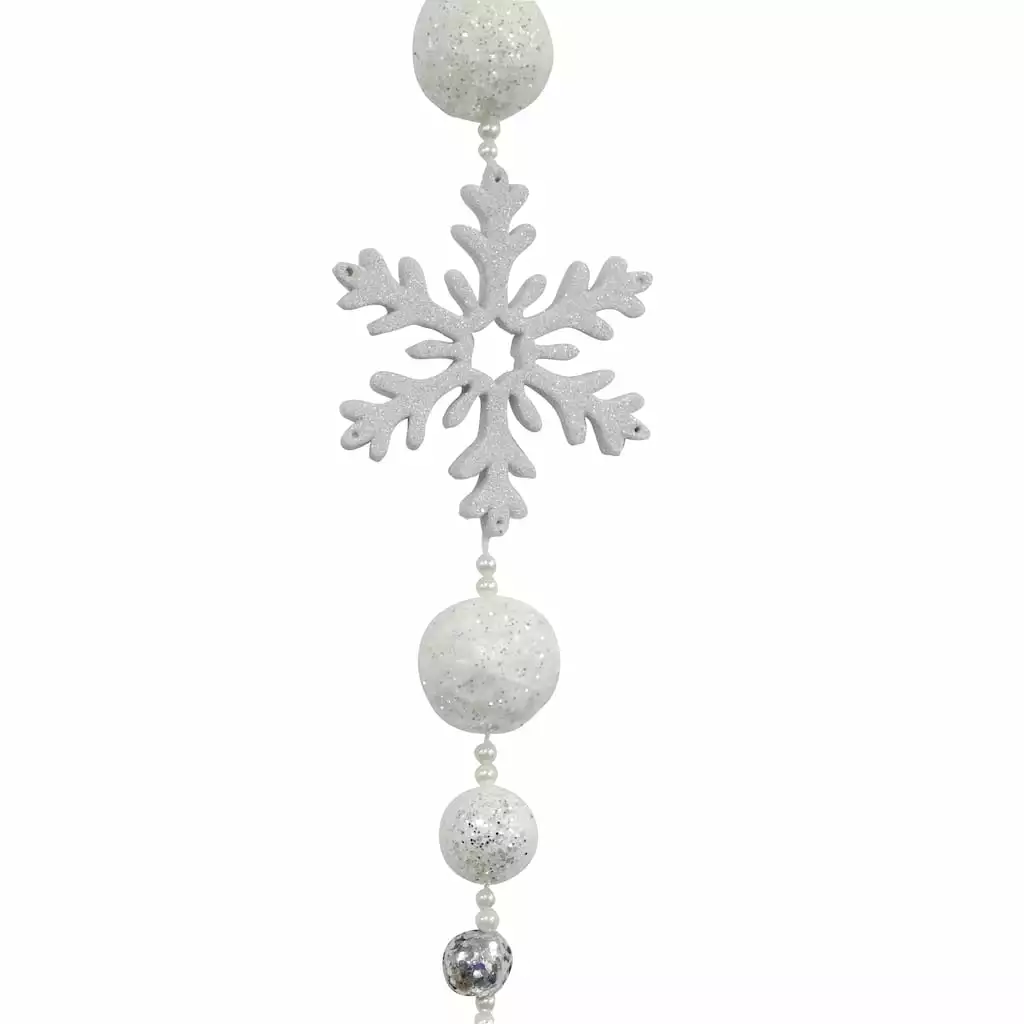Bring a touch of Christmas magic to your decorating with this lovely garland of pretty white snowflakes and glittery balls. This shimmery string makes a great addition to your tree, or drape over a mantel or bannister embellished with lights and ribbon for a festive display full of holiday cheer.