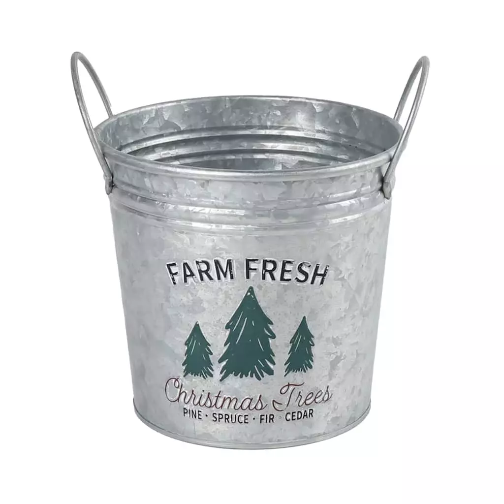 Fill this Christmas tree bucket with an arrangement of holiday stems for the perfect look. Display the finished accent on a shelf, counter or side table–it’s sure to transform your space.