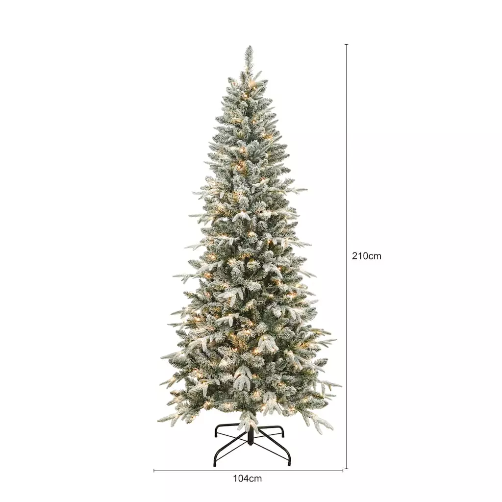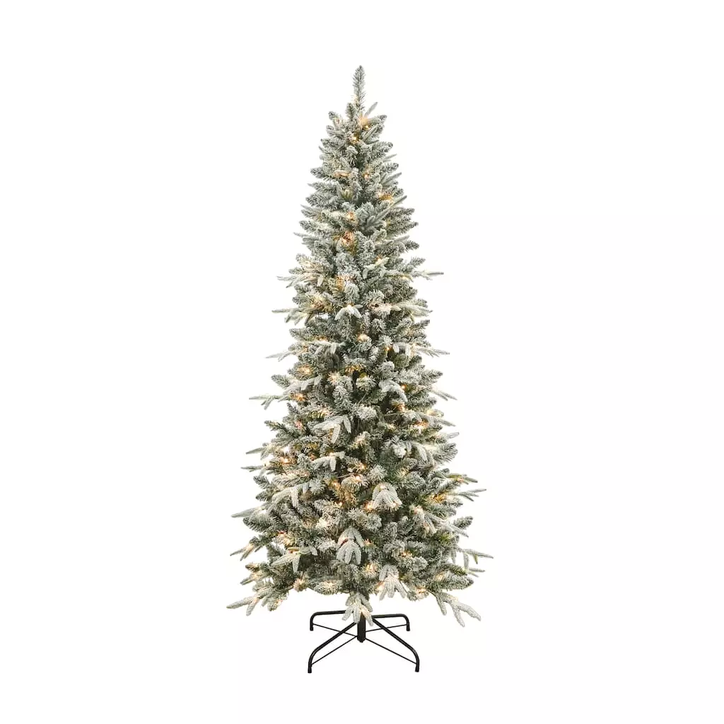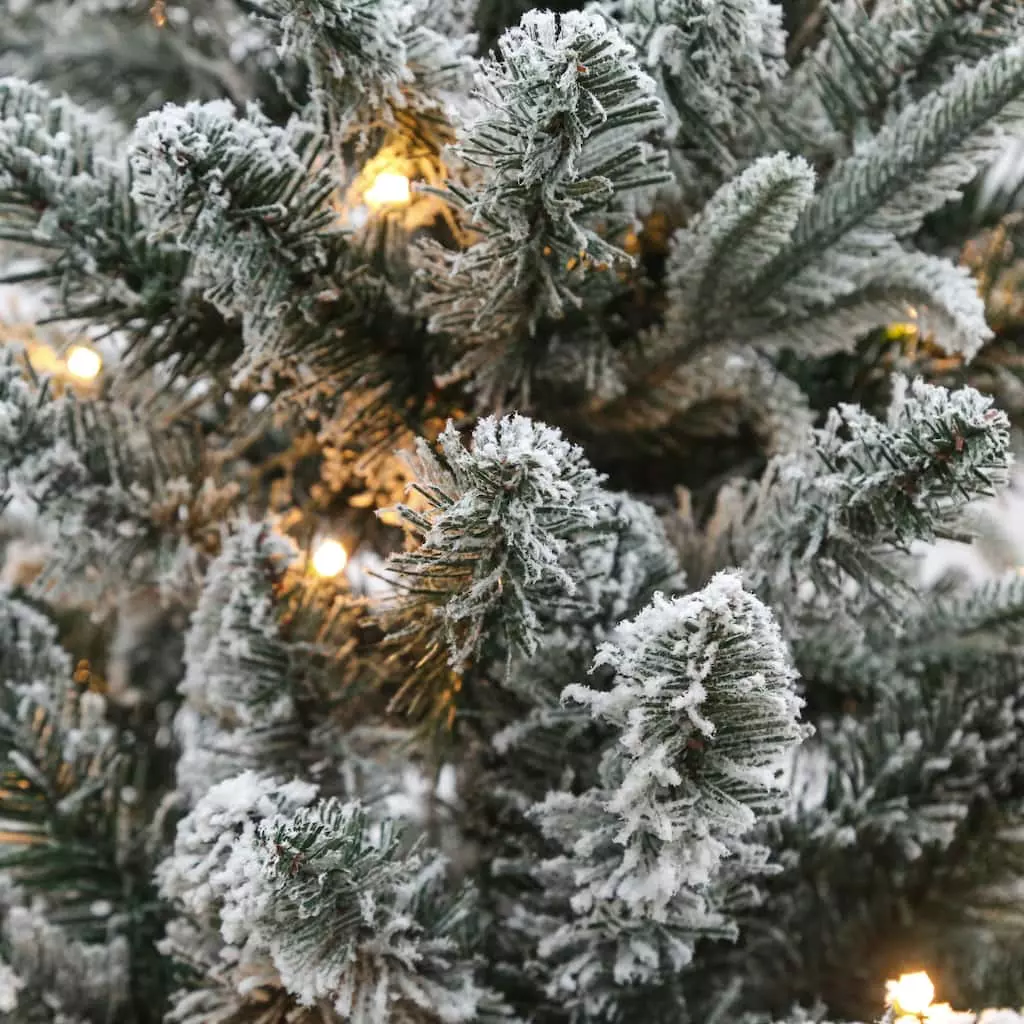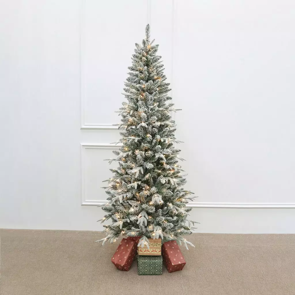 Have yourself a very merry Christmas with this Snowy Spruce artificial Christmas tree. This lightly flocked artificial Christmas tree features 996 branch tips and 250 warm white Micro LED lights for a charming holiday ambiance. This lovely tree is ready to showcase your favorite trimmings season after season.