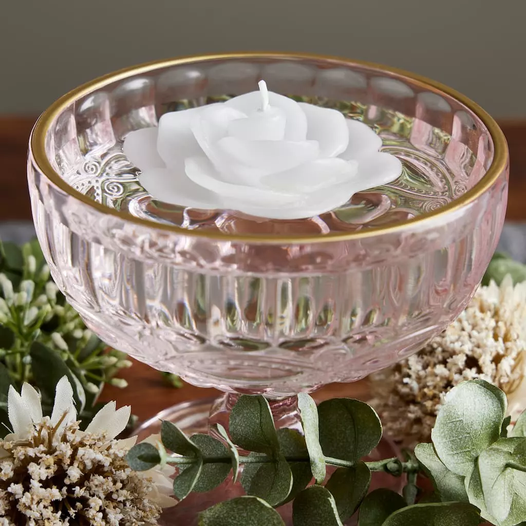 Surround yourself with style when you use this elegant floating rose shaped candle. Create one-of-a-kind decorations with the gentle illumination of water and candles and the sweet scent of gardenia. Whether you use it a vase or other vessel which holds water, floating candles are magical at dinner parties, weddings, seasonal events and more as they light your world with flickering light.
