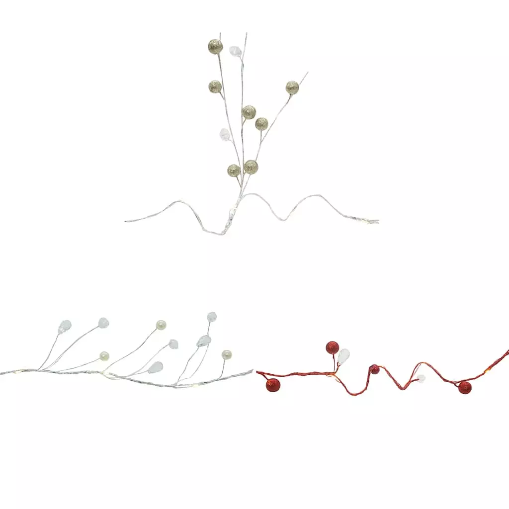 Make the season bright with these festive shimmery berry garland crafting lights from Ashland! These battery-operated warm white LED bulbs feature steady burning, fading and flashing light settings and a timer. These lights are ideal for use in handmade gifts and lit holiday floral dรฉcor to display in your home for the Christmas season.