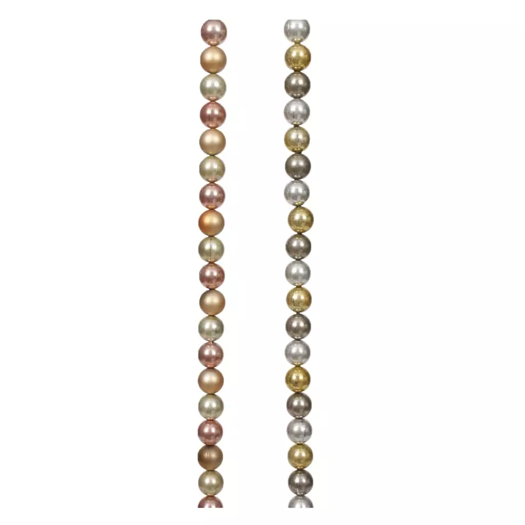 Bring a touch of Christmas magic to your decorating with this lovely garland of shimmery round beads with a metallic finish. This pretty string makes a great addition to your tree, or drape over a doorframe, mantel or bannister paired with lights and ribbon for a festive display full of holiday cheer.