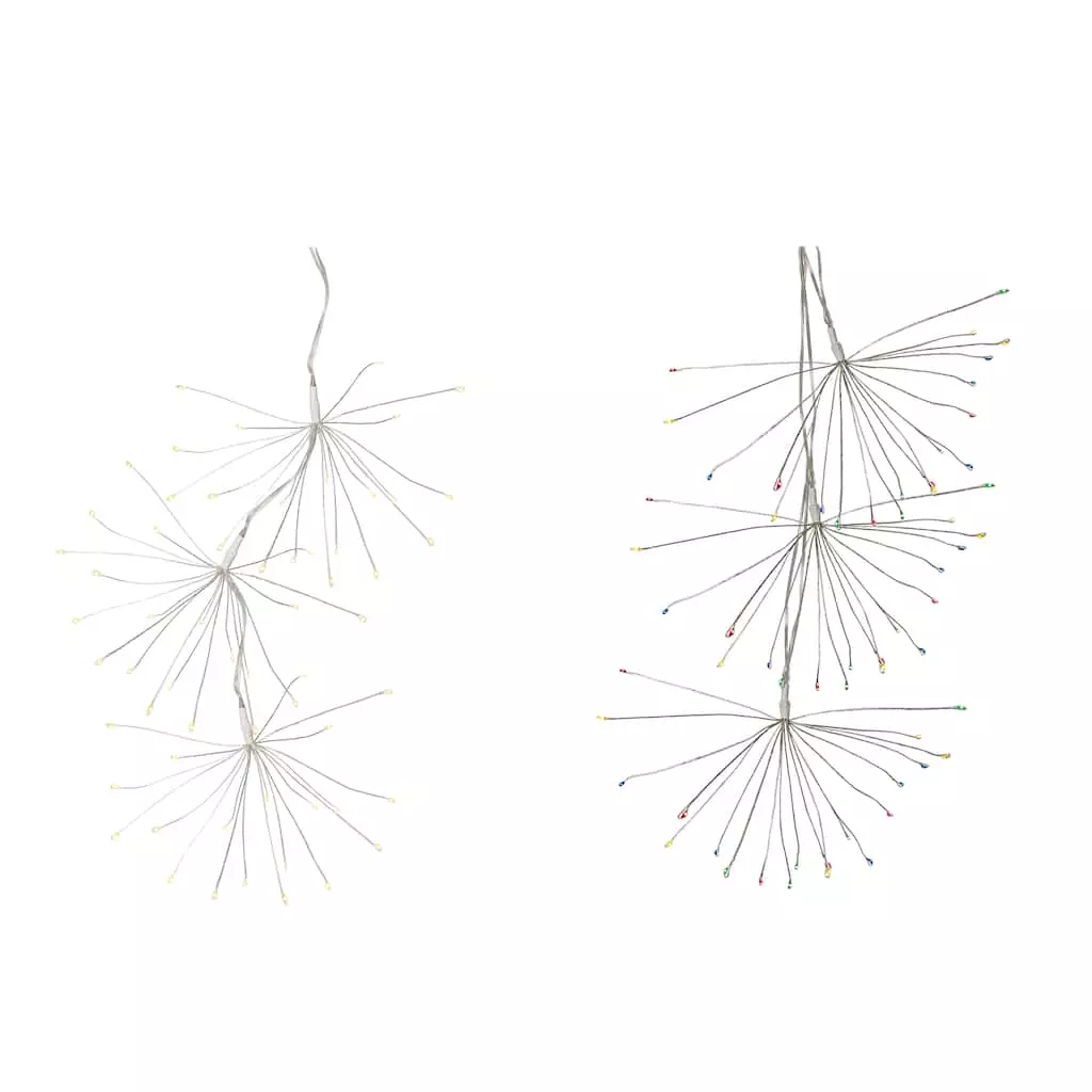 Make the season bright with this starburst LED crafting lights from Ashland! These battery-operated LED bulbs on silver wire starburst feature steady burning, twinkle, glisten, waves, sequential, chasing, fade, and combination light settings and a timer. This set of starburst crafting lights will be wonderful to display in your home for the Christmas season.