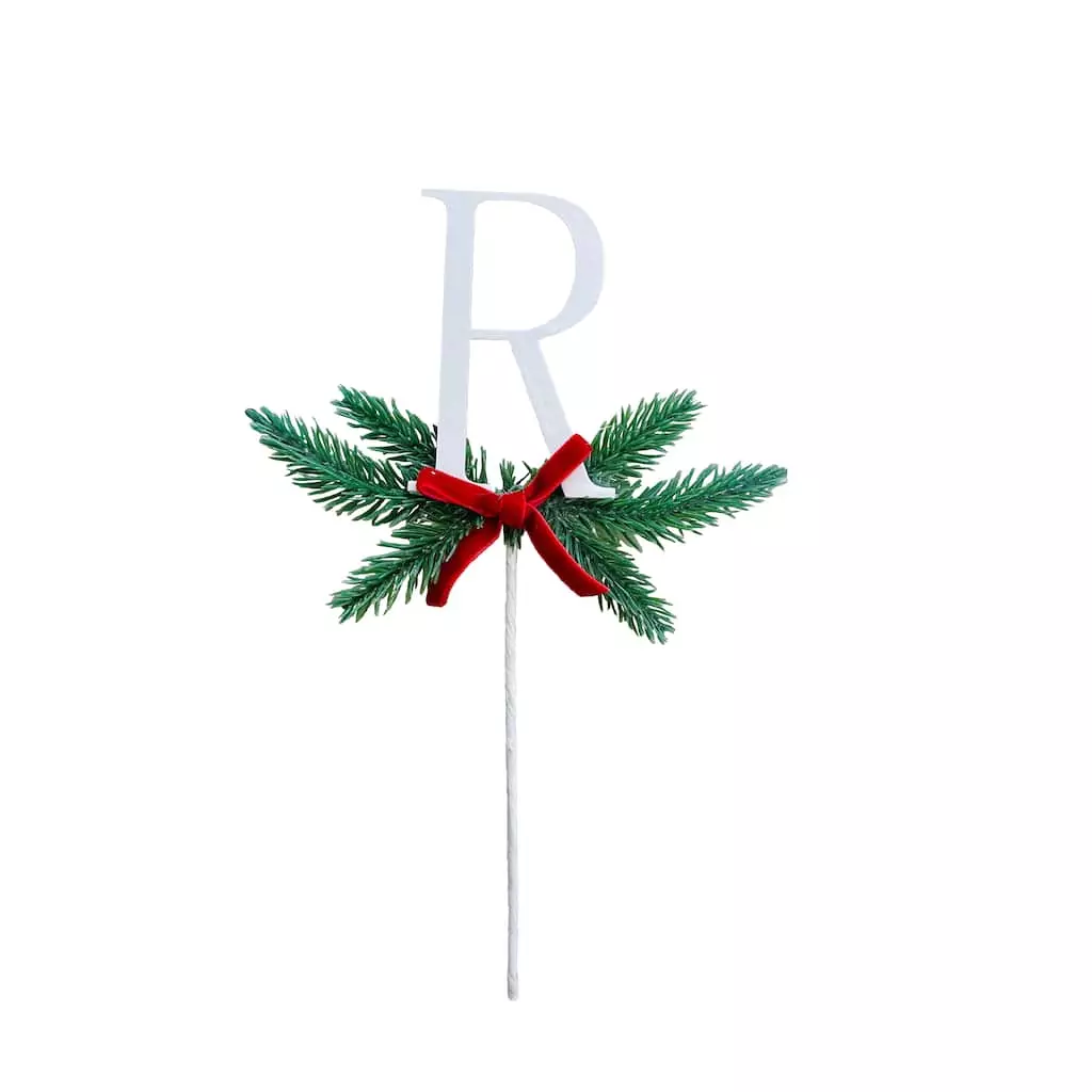 Transform your Christmas floral arrangement with this Christmas-themed letter R pick. Combine it with glittery poinsettias, frosted pinecones, and holly berries to create the perfect display!
