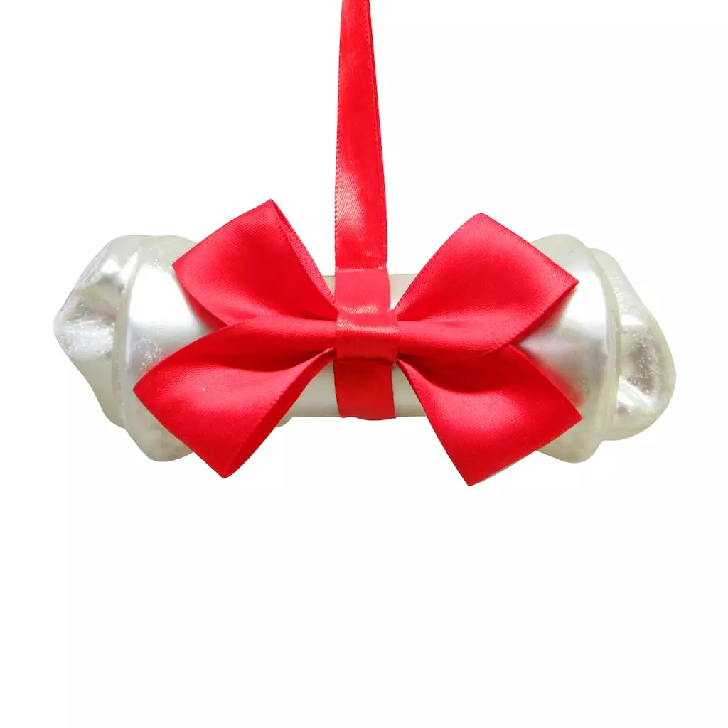 This beautiful bone gift ornament is perfect for sprucing up your holiday décor. Use it to embellish a tree, wreath, or garland for a whimsical touch!