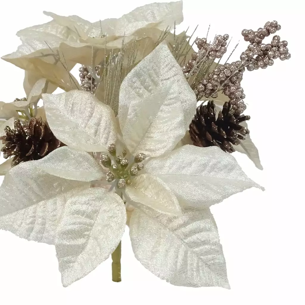 Place this vibrant poinsettia and pinecone bush in a decorative holiday container to transform your Christmas home décor. Display it in your living room for the perfect look!
