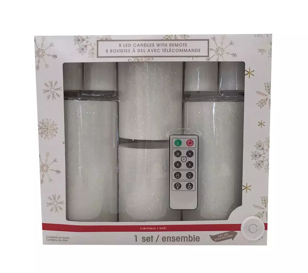 This beautiful glittery white LED candle set includes 8 candles and 1 remote. Perfect for safely adding an ambient vibe to your dΓ©cor, each candle will transform your table, shelf, or counter with the push of a button.