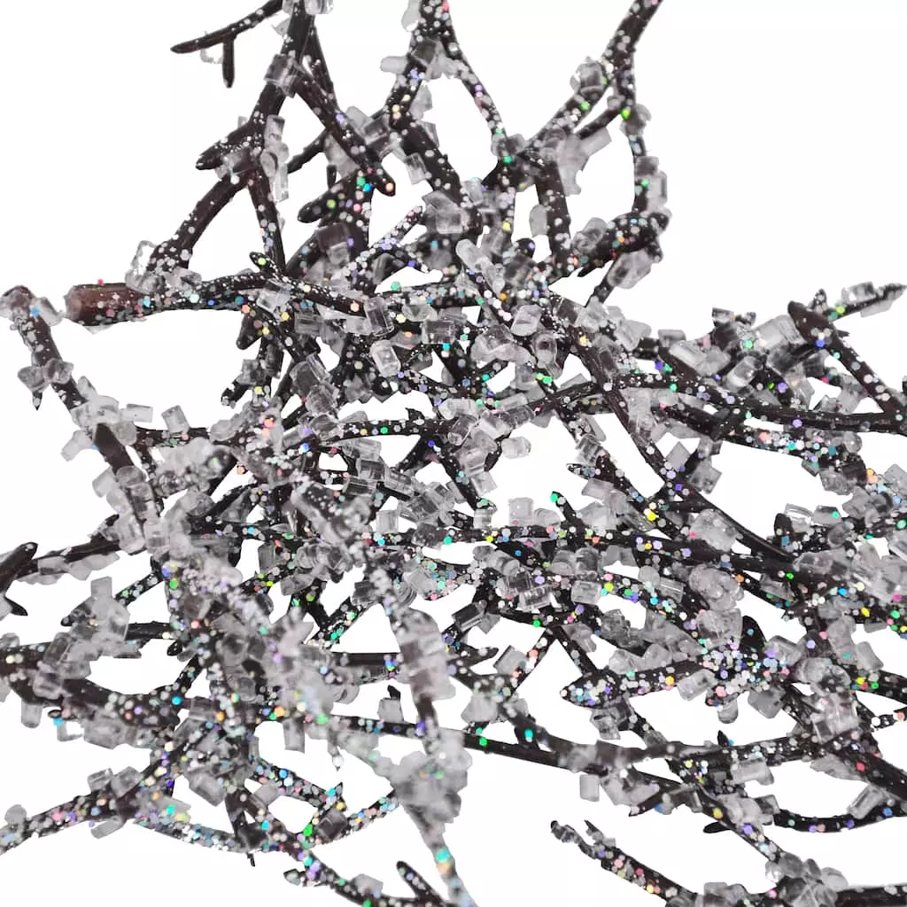 This glitzy iced twig filler is perfect for lending a glamorous touch to your Christmas dΓ©cor. Add it to a clear bowl with other colorful accents to display on your table or counter.