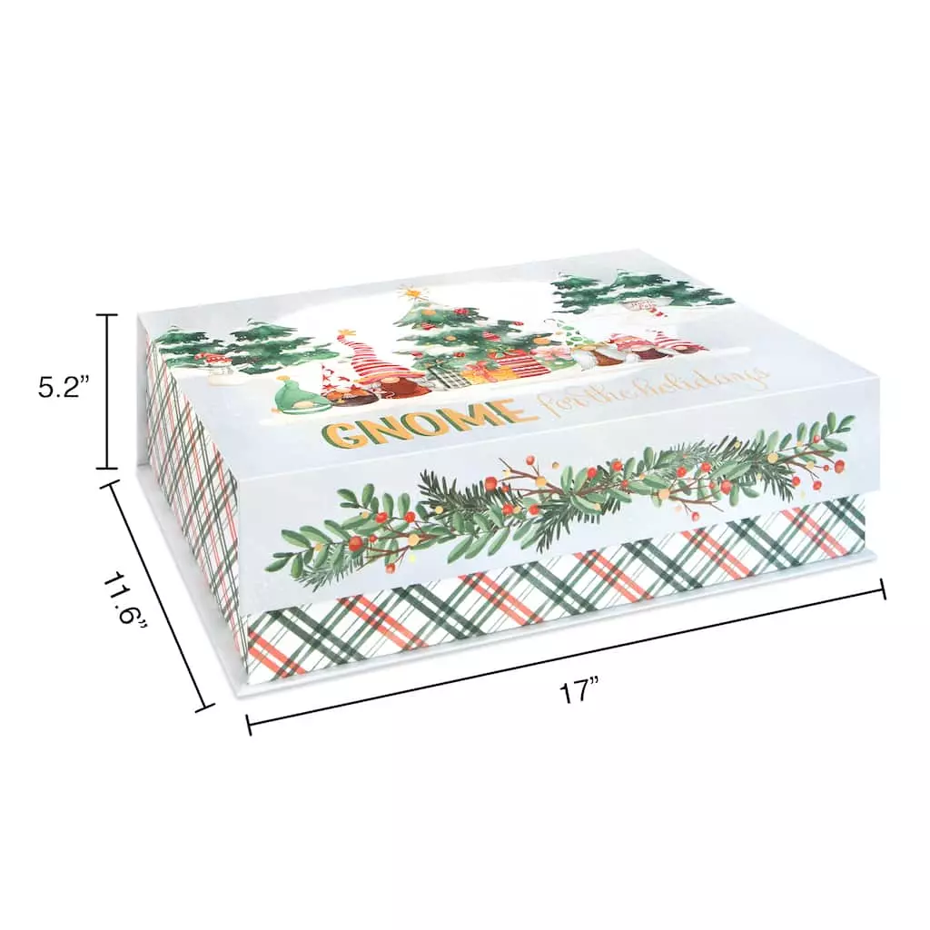 This flip top decorative box is the perfect piece for your home dΓ©cor and storage. It features “Gnome for the holidays”, a seasonal design with gnomes, and mixed greenery and berries on the flap.