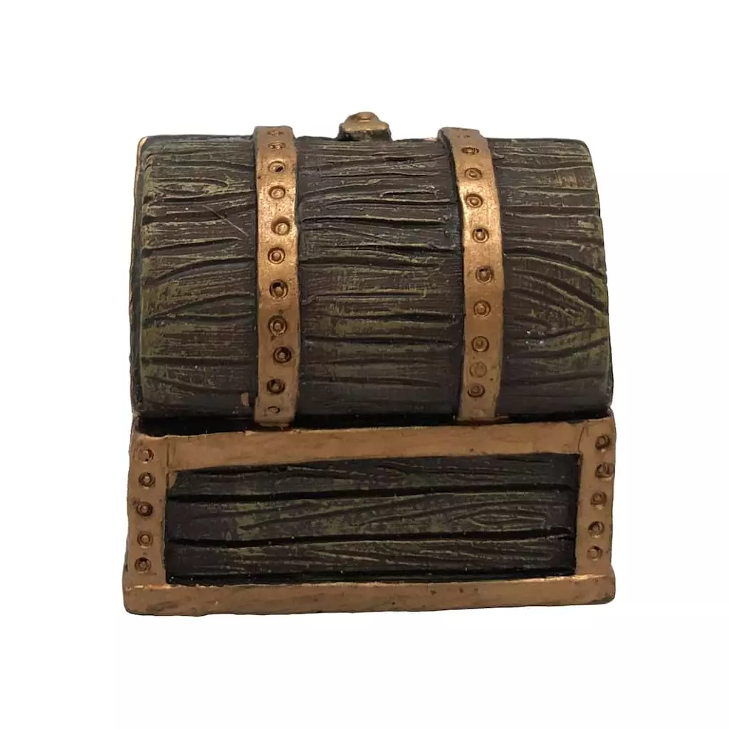 Create a pirate’s remote island treasure cave or the finishing touch to a dragon’s gold-filled lair with this miniature treasure chest. Place with other shiny treasures alongside rock formations and water features to complete the setting.