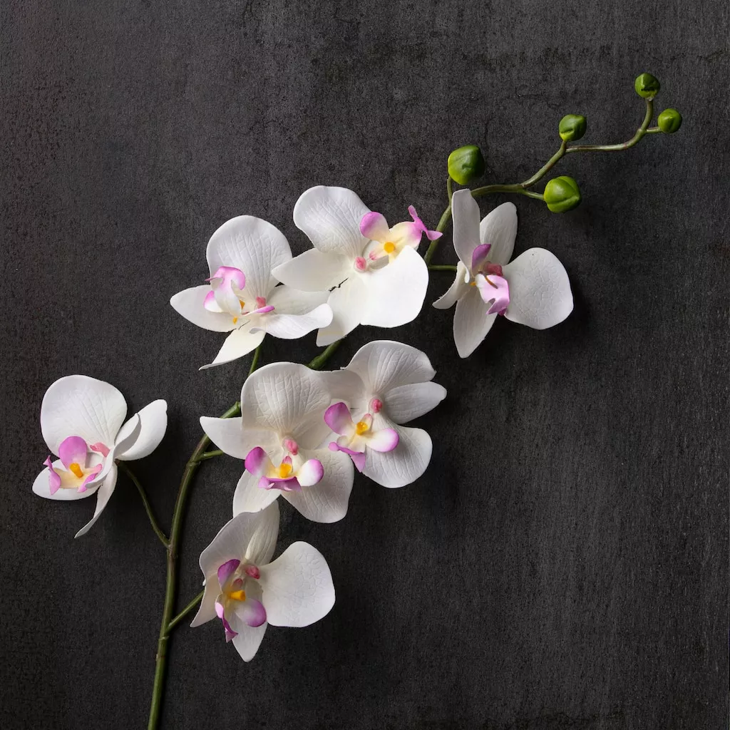 This beautiful orchid spray can be used alone in a vase or grouped with other flowers to make a larger arrangement. It can also be used as an element in everyday craft projects or an accent in your home or office décor.