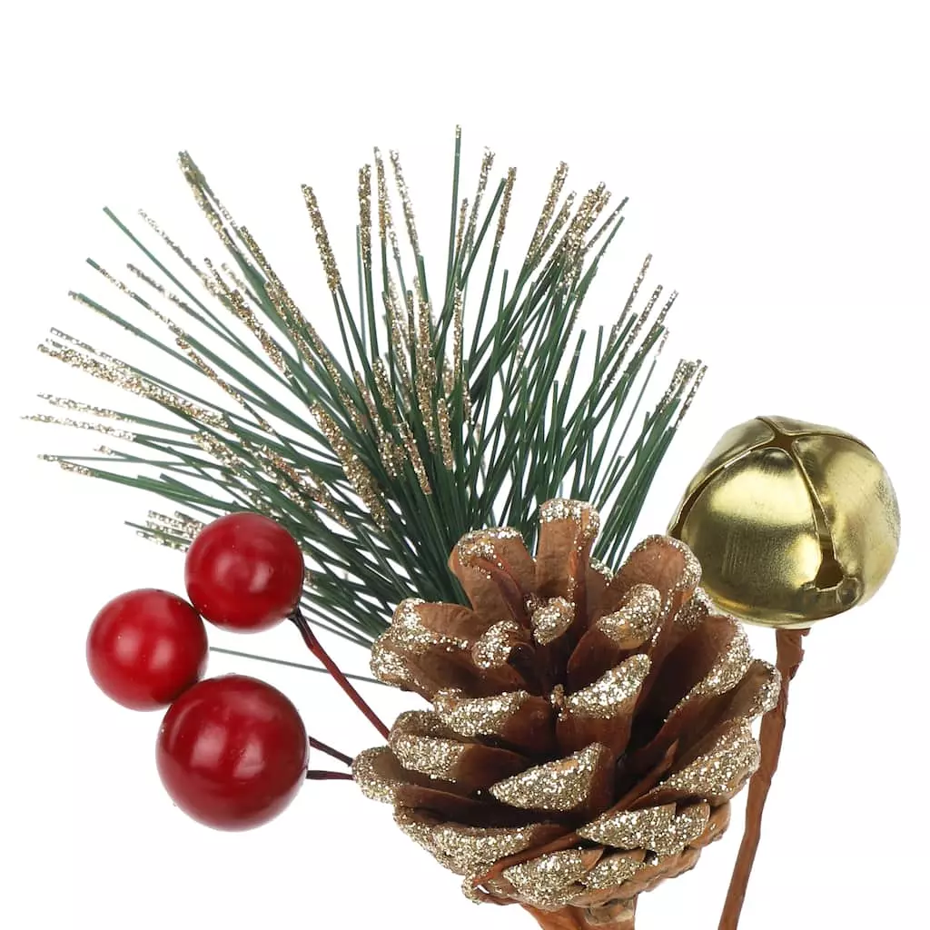 This pinecone pick with berries and bells is the perfect to complement to your seasonal home décor. Team it with dried flowers and berries to create a stunning décor accent.