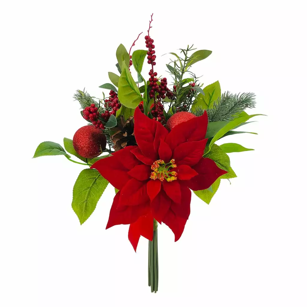 Decorate your home with this beautiful poinsettia and berry bush by Ashland. It will look lovely for the holiday season in a vase full of greenery.