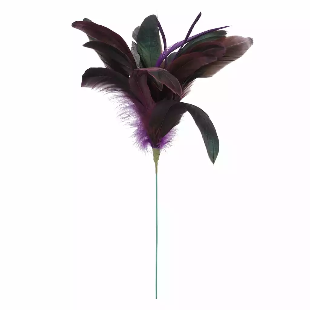 This purple feather pick is perfect for adding a unique touch to your seasonal floral arrangement. Place it in a beautiful container for the perfect look.