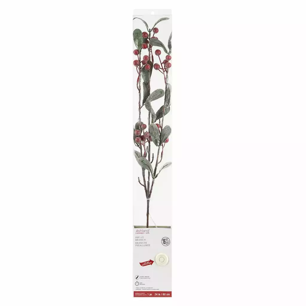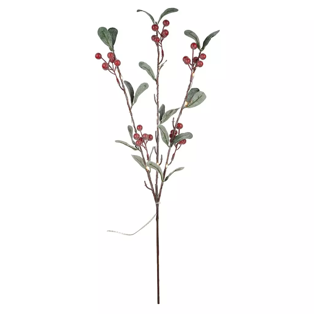Wholesale πŸ’― Red Berries & Leaves Twig With 16 Lights by Ashland® ✨