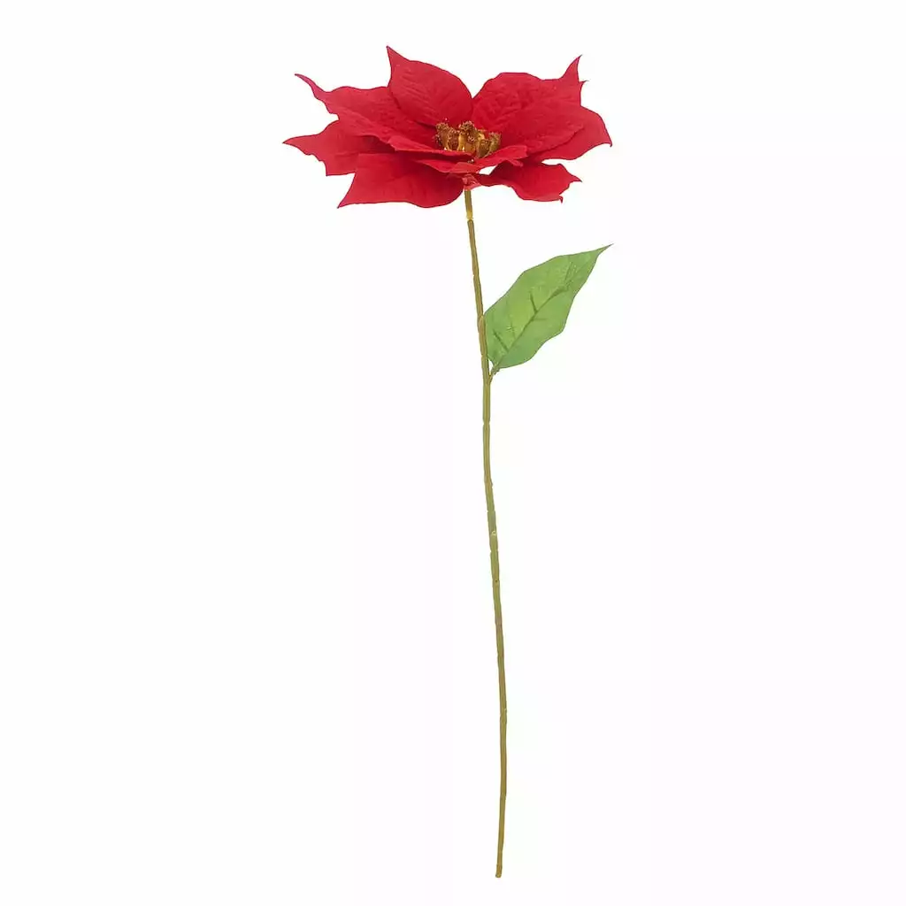 This traditional red poinsettia stem is perfect for adding to a seasonal DIY floral arrangement. Place it in a decorative container to display on your coffee table or counter.