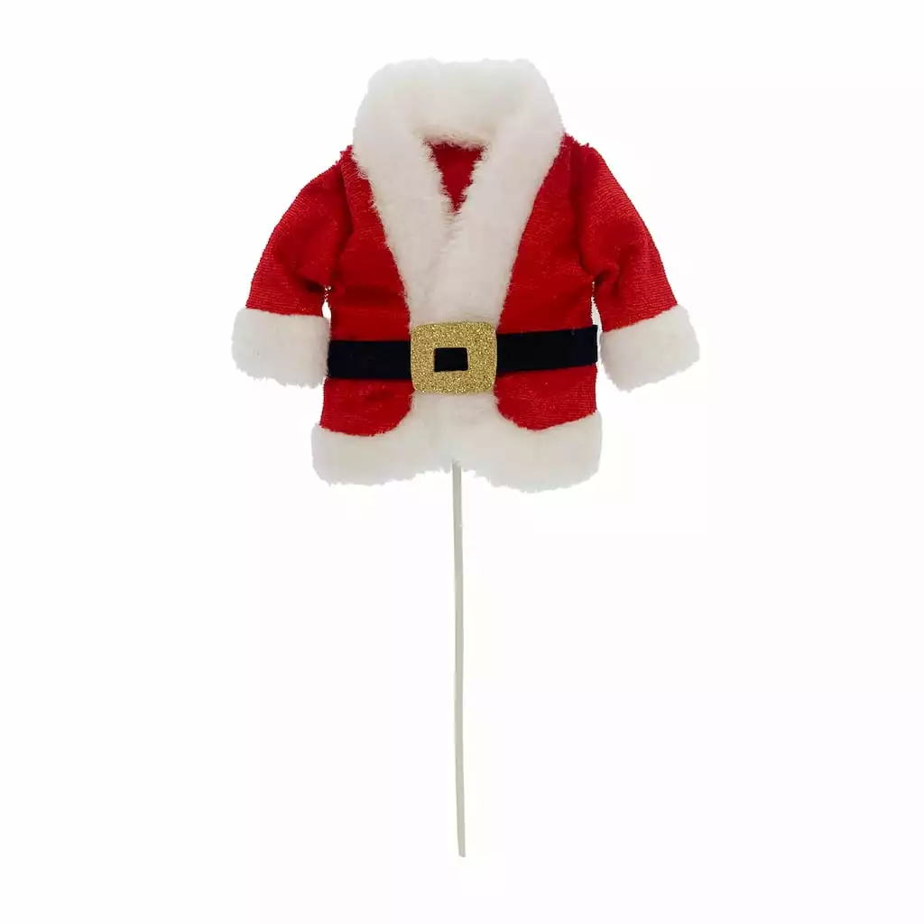 Add a fun, festive touch to your holiday dรฉcor by adding this adorable Santa suit pick to your wreaths and floral arrangements. Use to give a little playful Christmas cheer to a vase of vibrant red blooms and lush greenery on a mantel or entryway table in your home.
