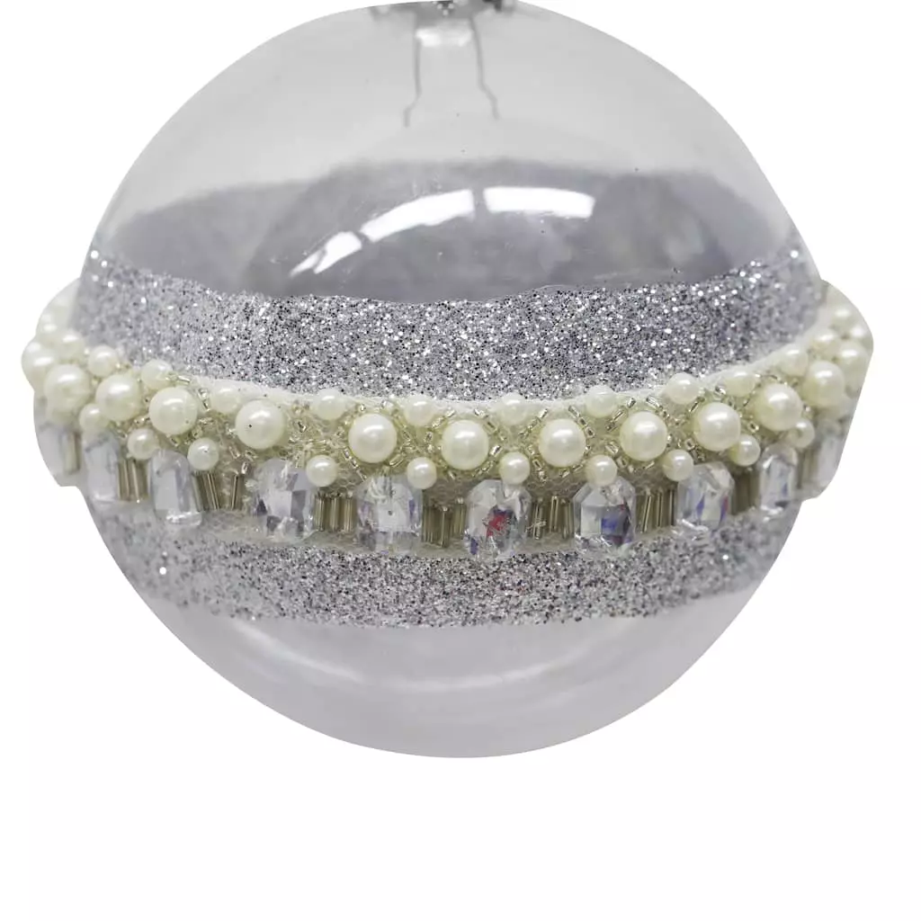 This beautiful glitter and pearl ball ornament is perfect for sprucing up your holiday décor. Use it to embellish a tree, wreath, or garland for a whimsical touch!