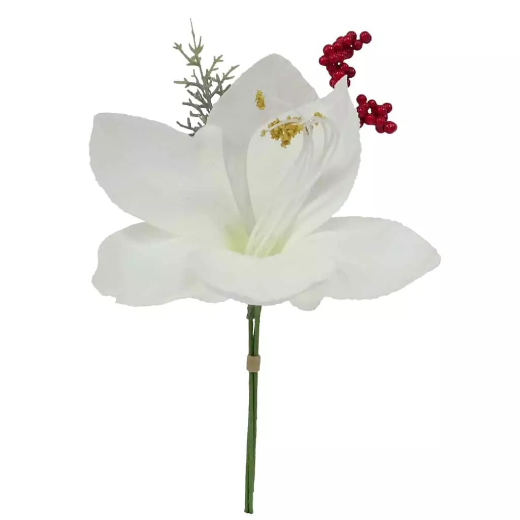 Decorate your home with this beautiful amaryllis and berry bush by Ashland. It will look lovely for the holiday season in a vase full of greenery.