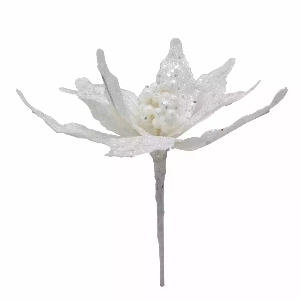 New 😍 White Glitter Poinsettia Pick by Ashland® πŸŽ‰